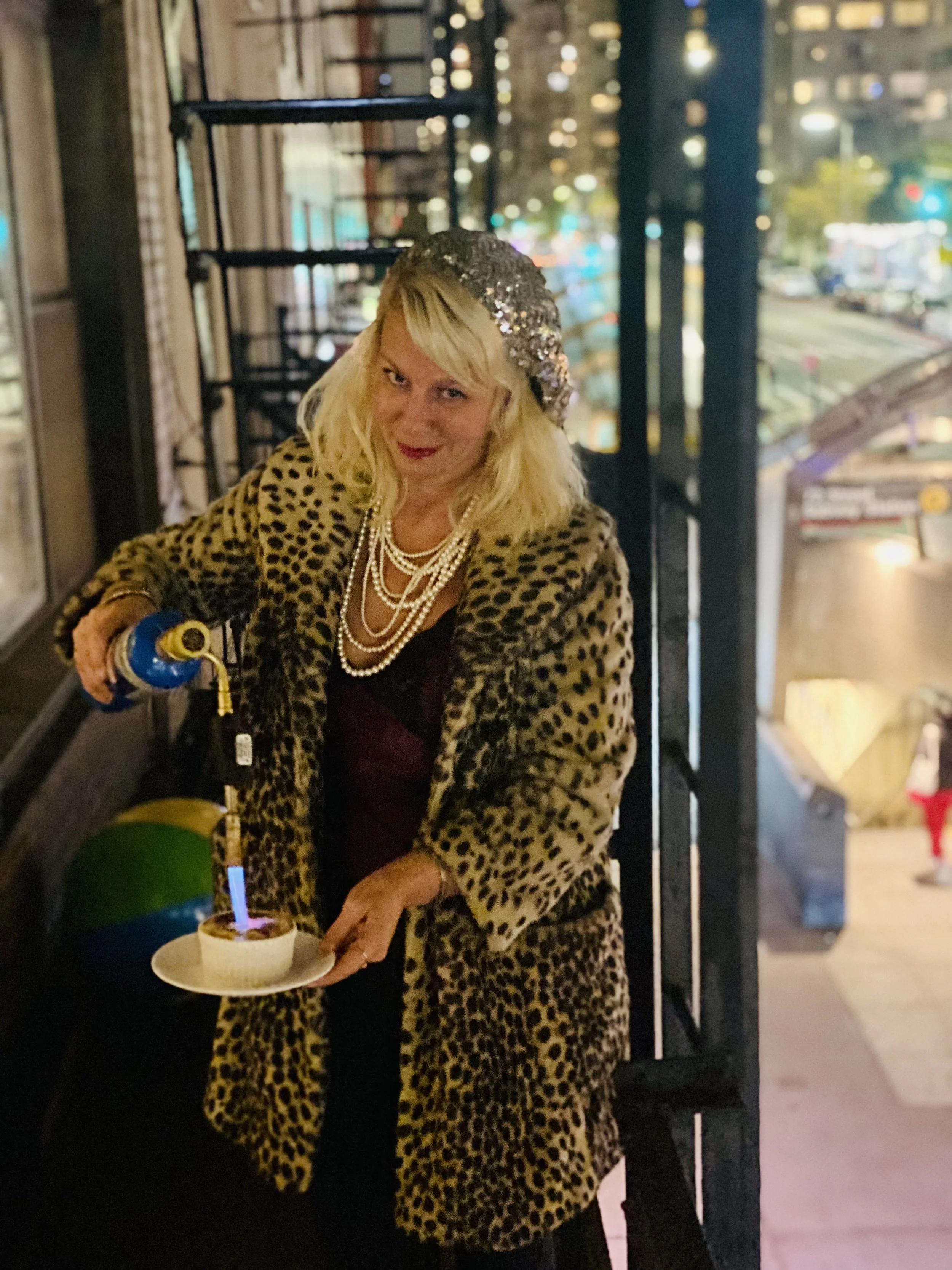 Ok, it’s her fire escape but we make the best with what we have. We needed to catch each other up on our latest dating adventures so I thought it would be best if we had an indulgent dessert to throw down our gullets to sooth any and all horrific moments we were about to regal one another with.